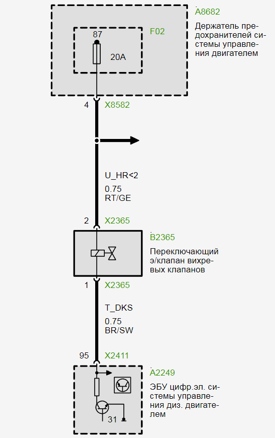 Электросхема клапана управления вихревыми заслонками BMW E87 N47TOP