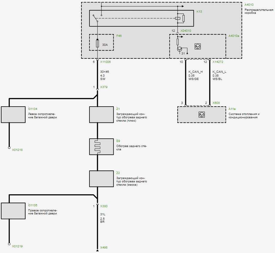 Электросхема обогрева заднего стекла BMW 1-й_E81/E82/ E87/E88 (до 2007_03)