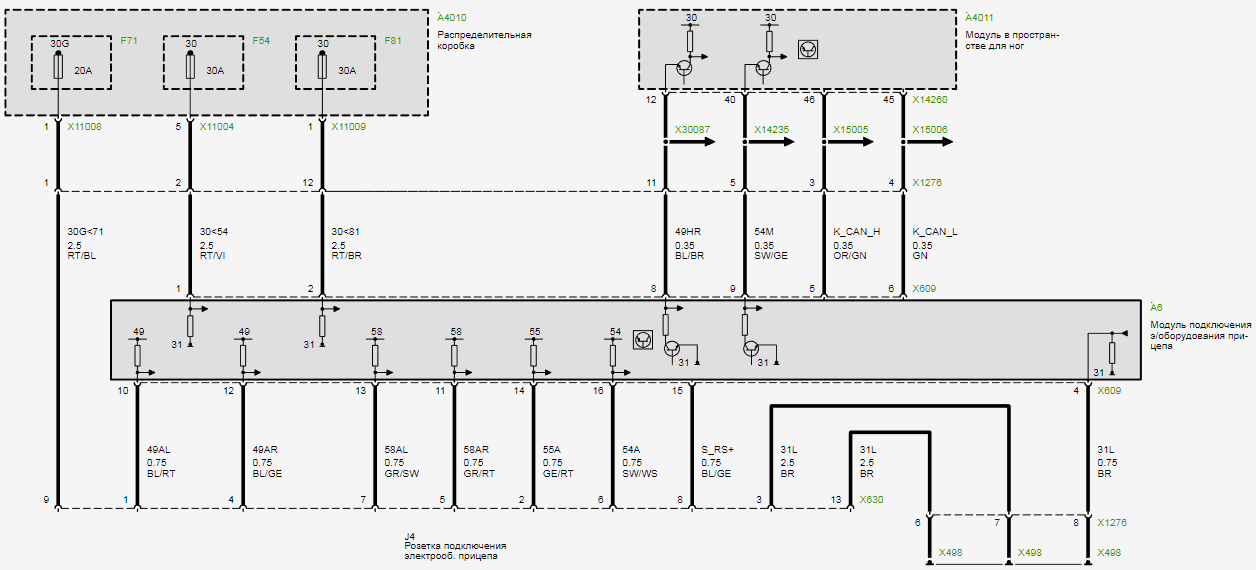 Электросхема освещения прицепа BMW (1-й_E81/E82/ E87/E88 (с 2007_09) c EUR_ЛР или EUR_ПР)