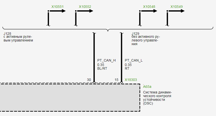 Датчик DSC в исполнении для автомобилей с активным рулевым управлением выдает избыточные сигналы (2 сигнала скорости вращения автомобиля вокруг вертикальной оси, 2 сигнала поперечного ускорения).