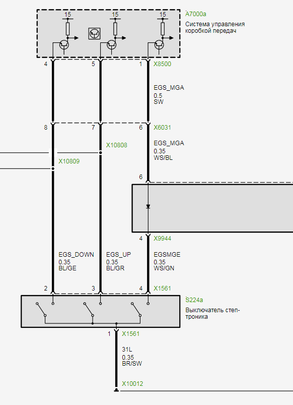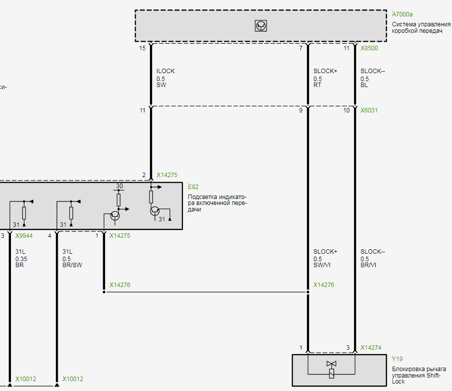 Электросхема селектора АКПП 6-HPTU BMW E87 (с 2007_09) - часть 2