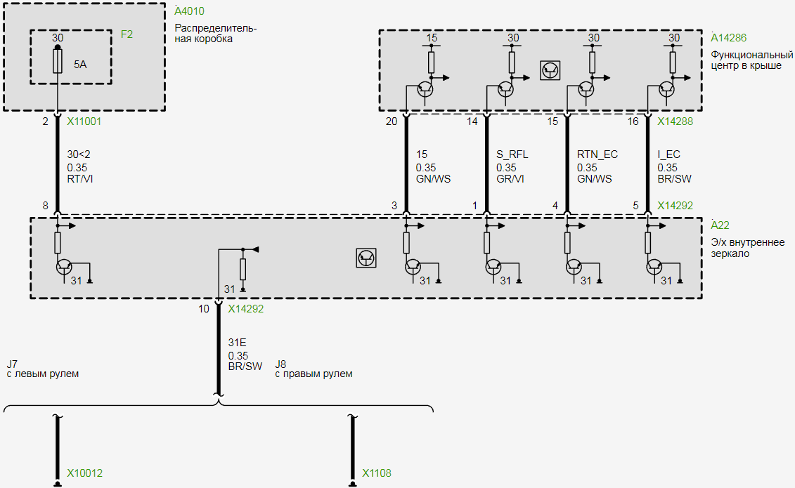 Электросхема внутреннего зеркала заднего вида BMW (1-й_E81/E82/ E87/E88)Электросхема внутреннего зеркала заднего вида BMW (1-й_E81/E82/ E87/E88) Post navigation Электросхема питания функционального центра в крыше (FZD) BMW (1-й_E81/E82/ E87/E88 с 2007_09) Электросхема диагностического разъема OBDII BMW e87 (до 2007_03)