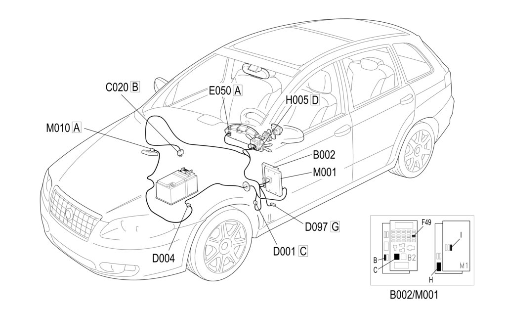 Функция круиз-контроля управляется блоком управления двигателем M010 посредством управления левым подрулевым переключателем H005 (разъем D).