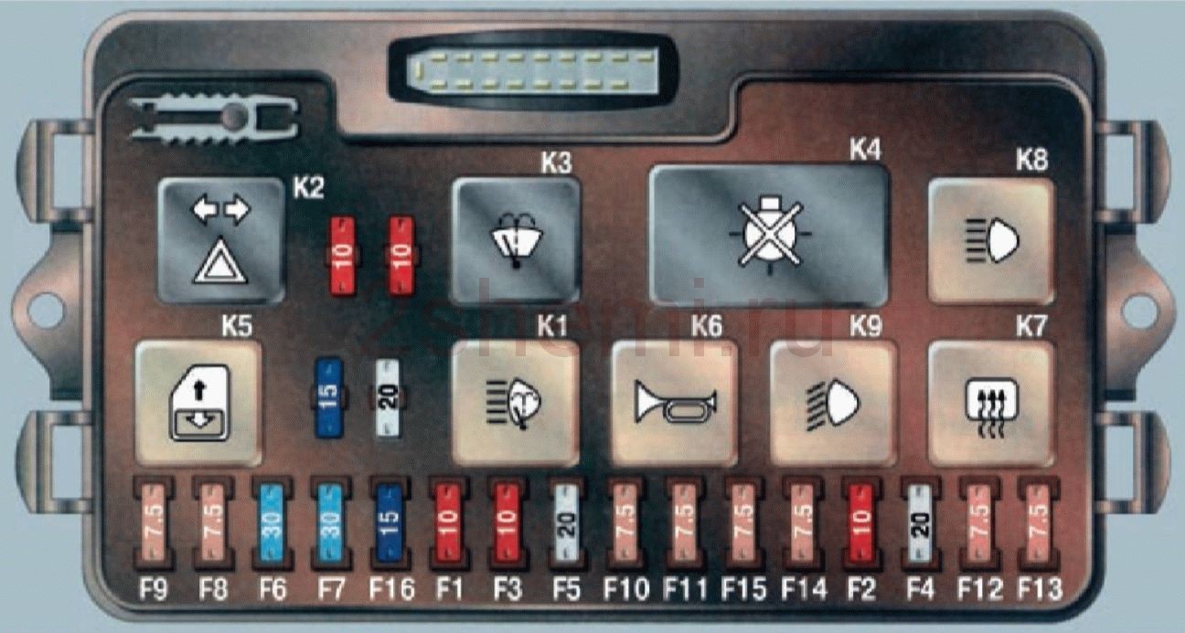 Электросхема блока реле и предохранителей ВАЗ 2109
