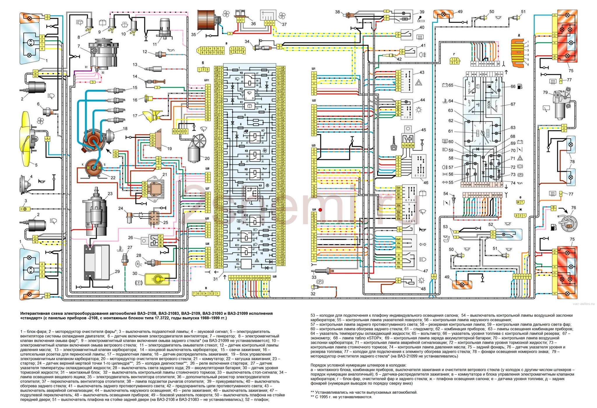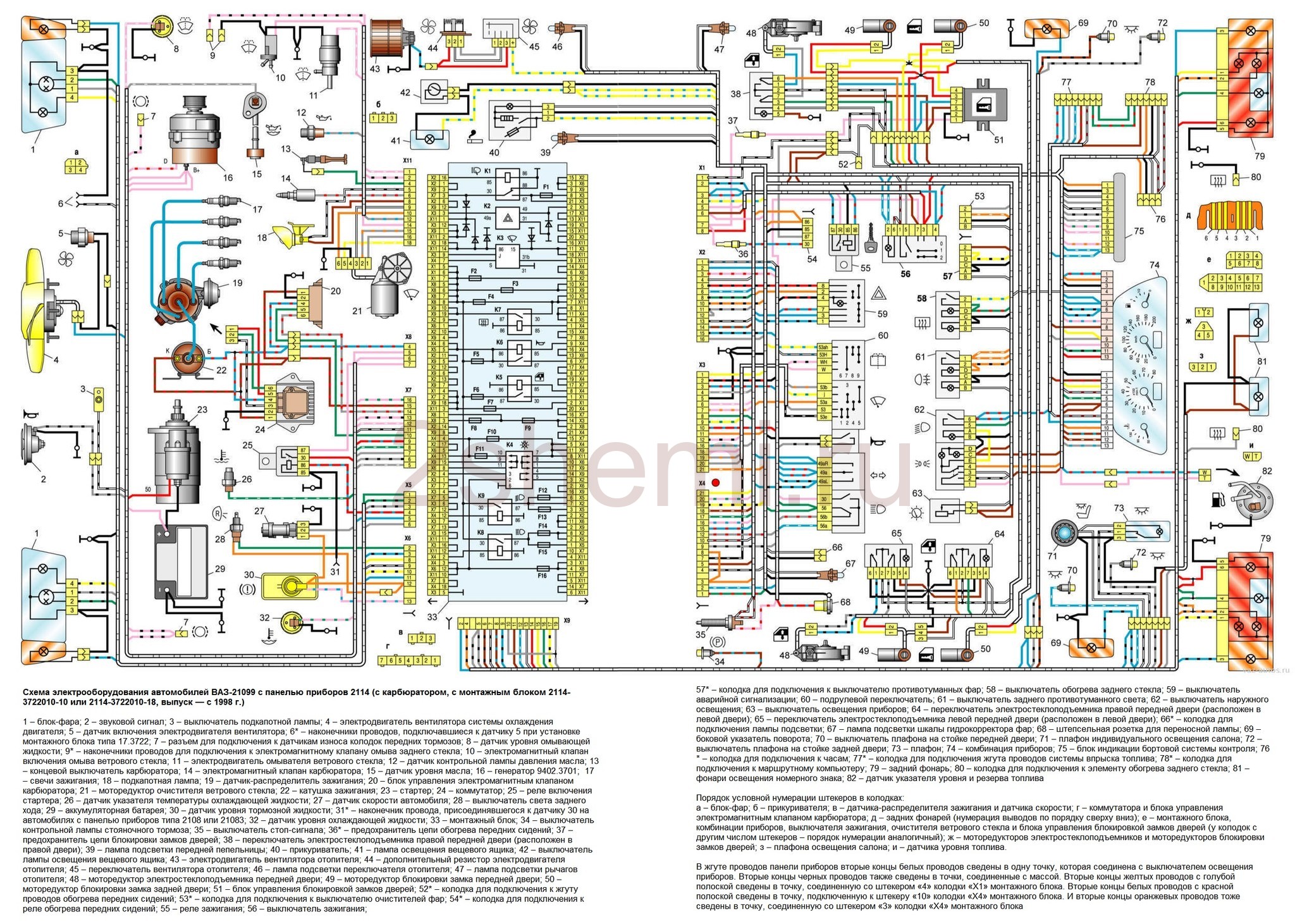 Электросхема ВАЗ-2109 карбюратор