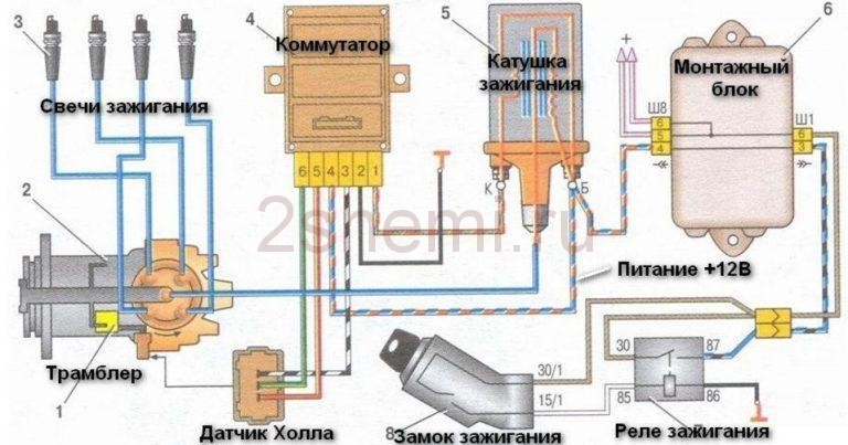 Электросхема бесконтактного зажигания ВАЗ-2109 карбюратор