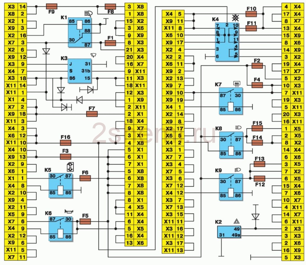 K2-реле-прерыватель указателей поворота и аварийной сигнализации;