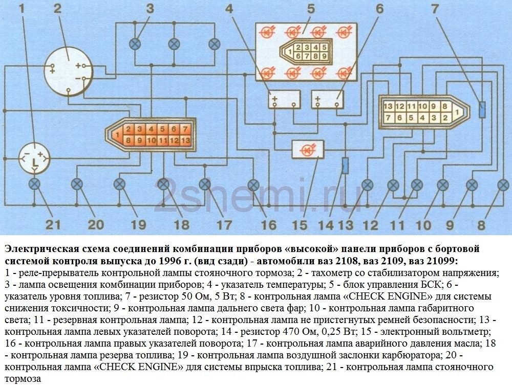 Электросхема комбинации приборов для высокой панели ВАЗ-2109