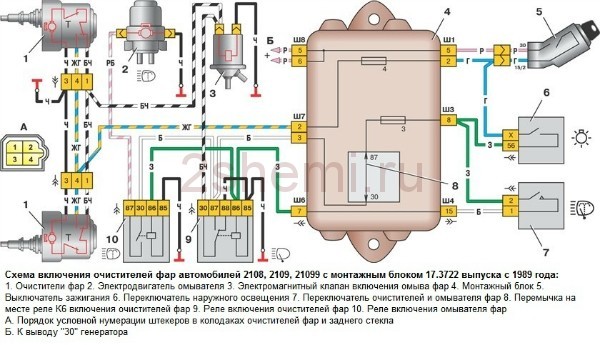 Электросхема очистителей фар ВАЗ-2109
