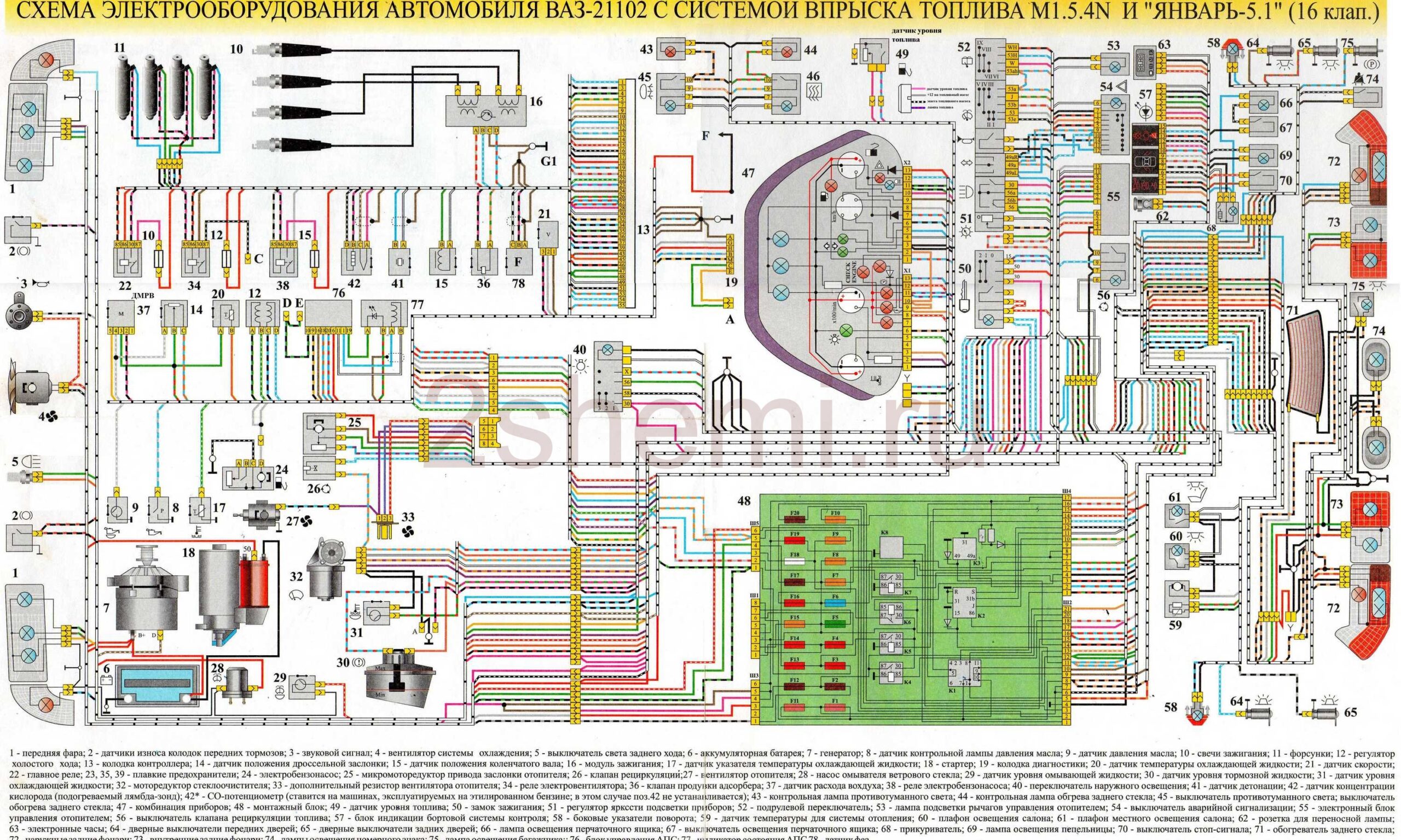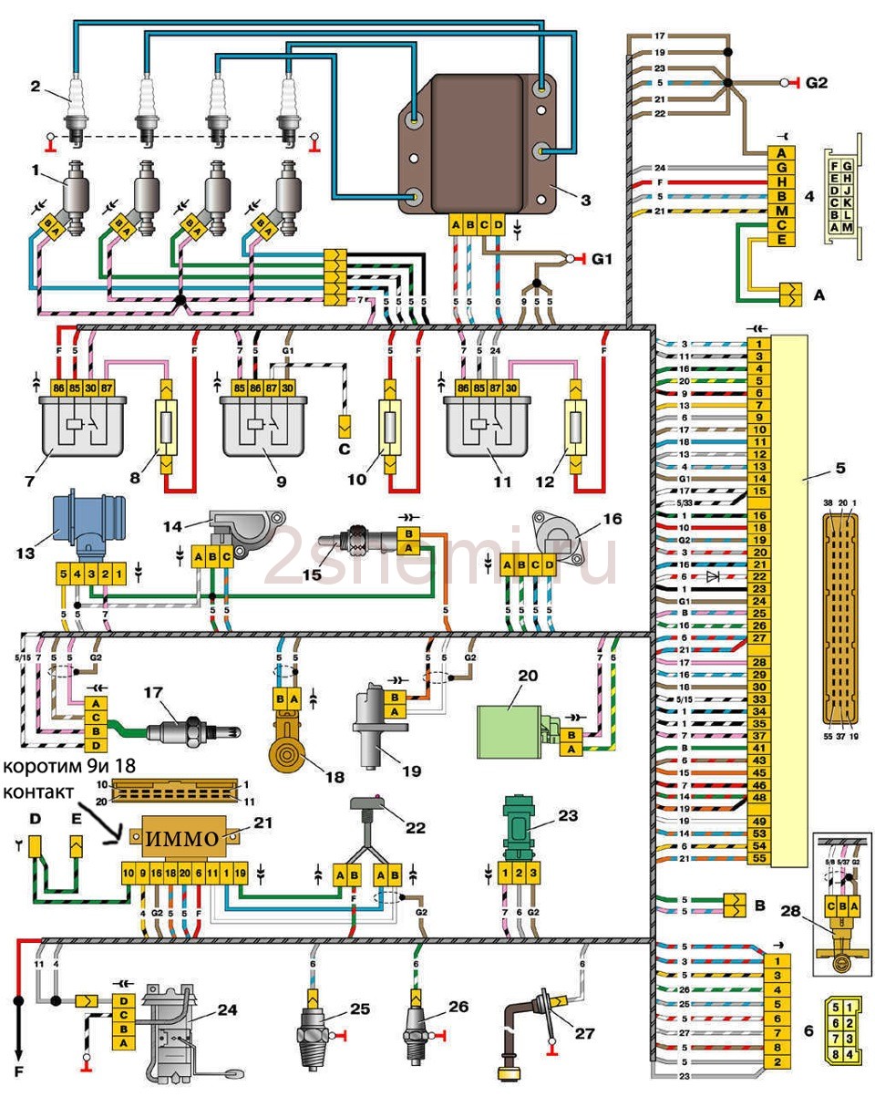 Электросхема ВАЗ 2110 инжектор 8 клапанов