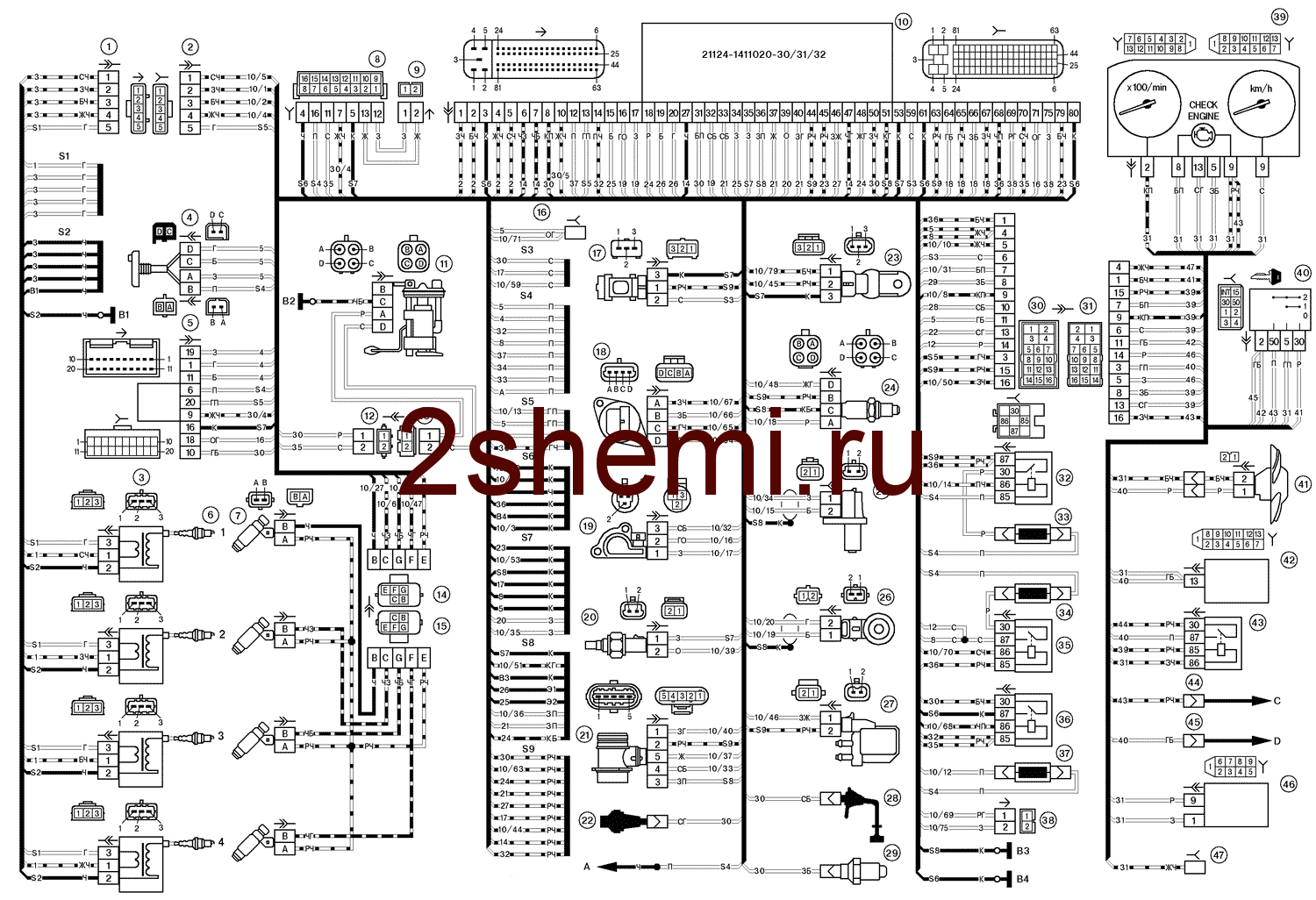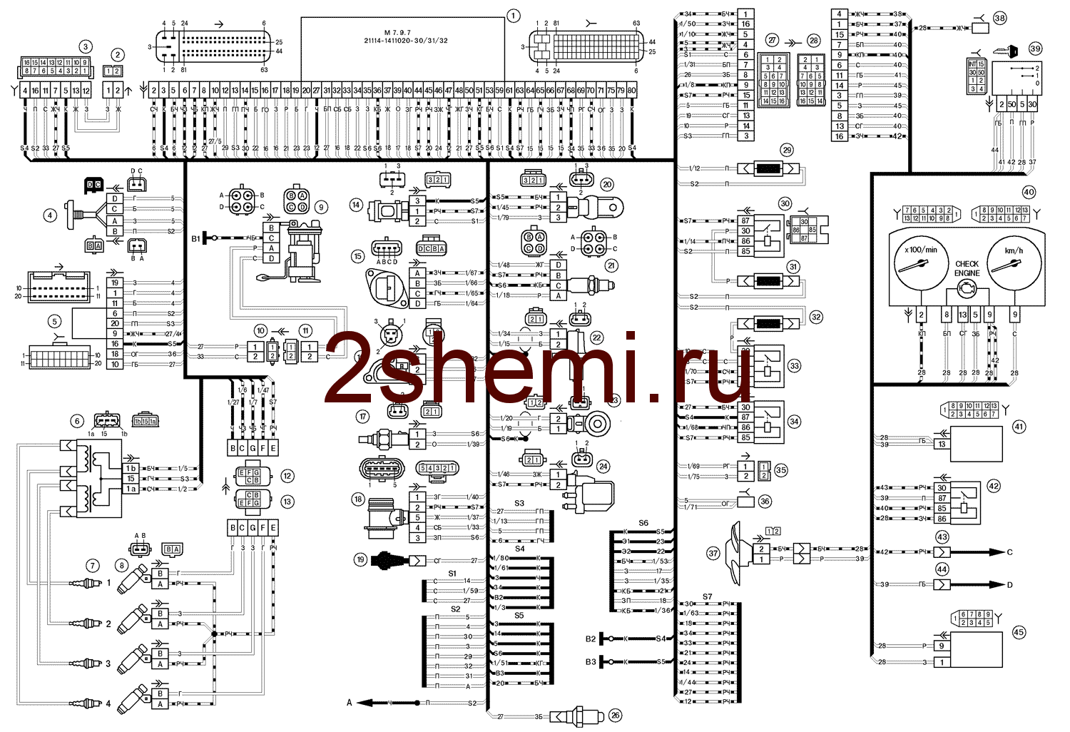 Электросхема управления двигателем ВАЗ-21104